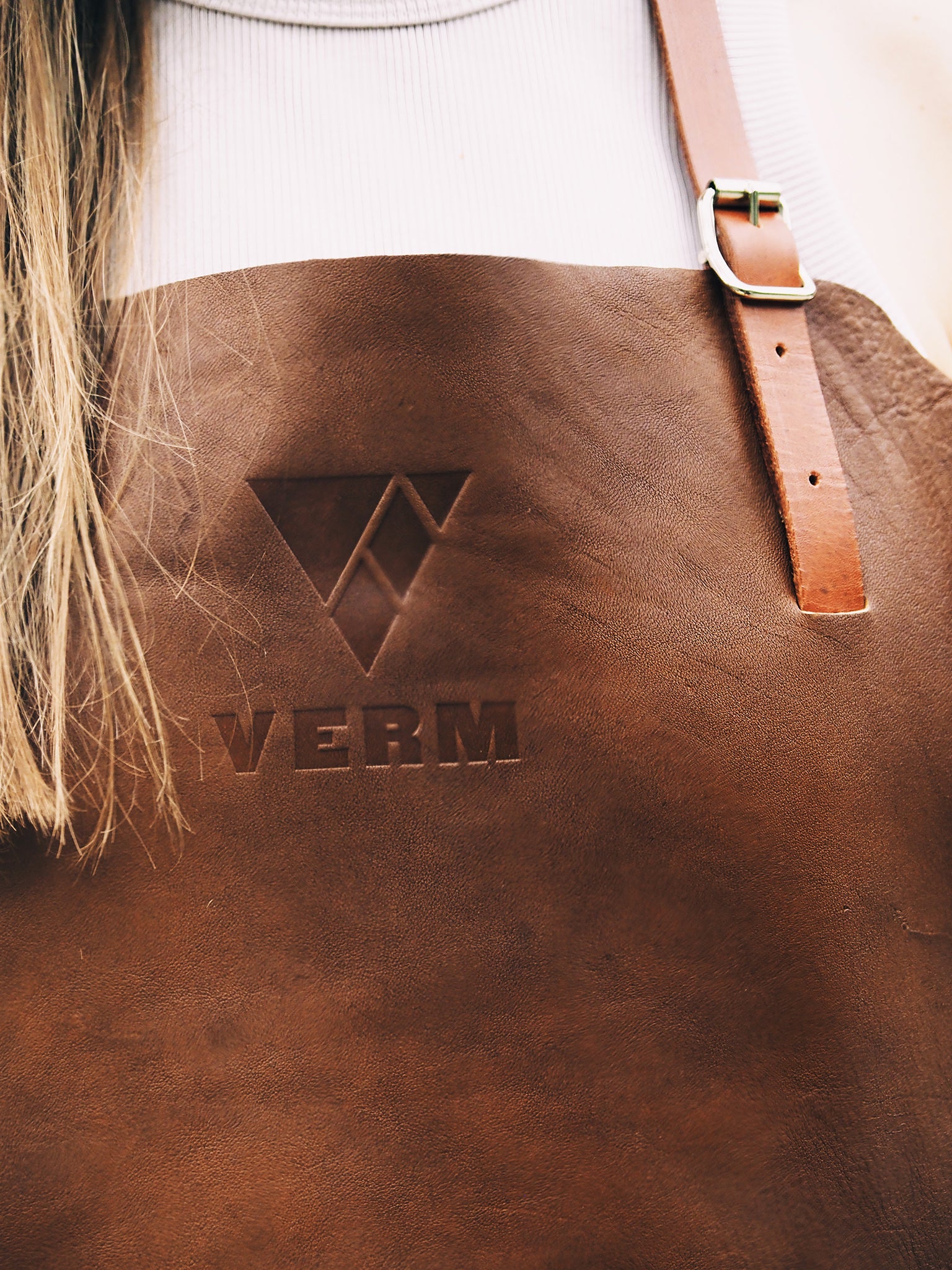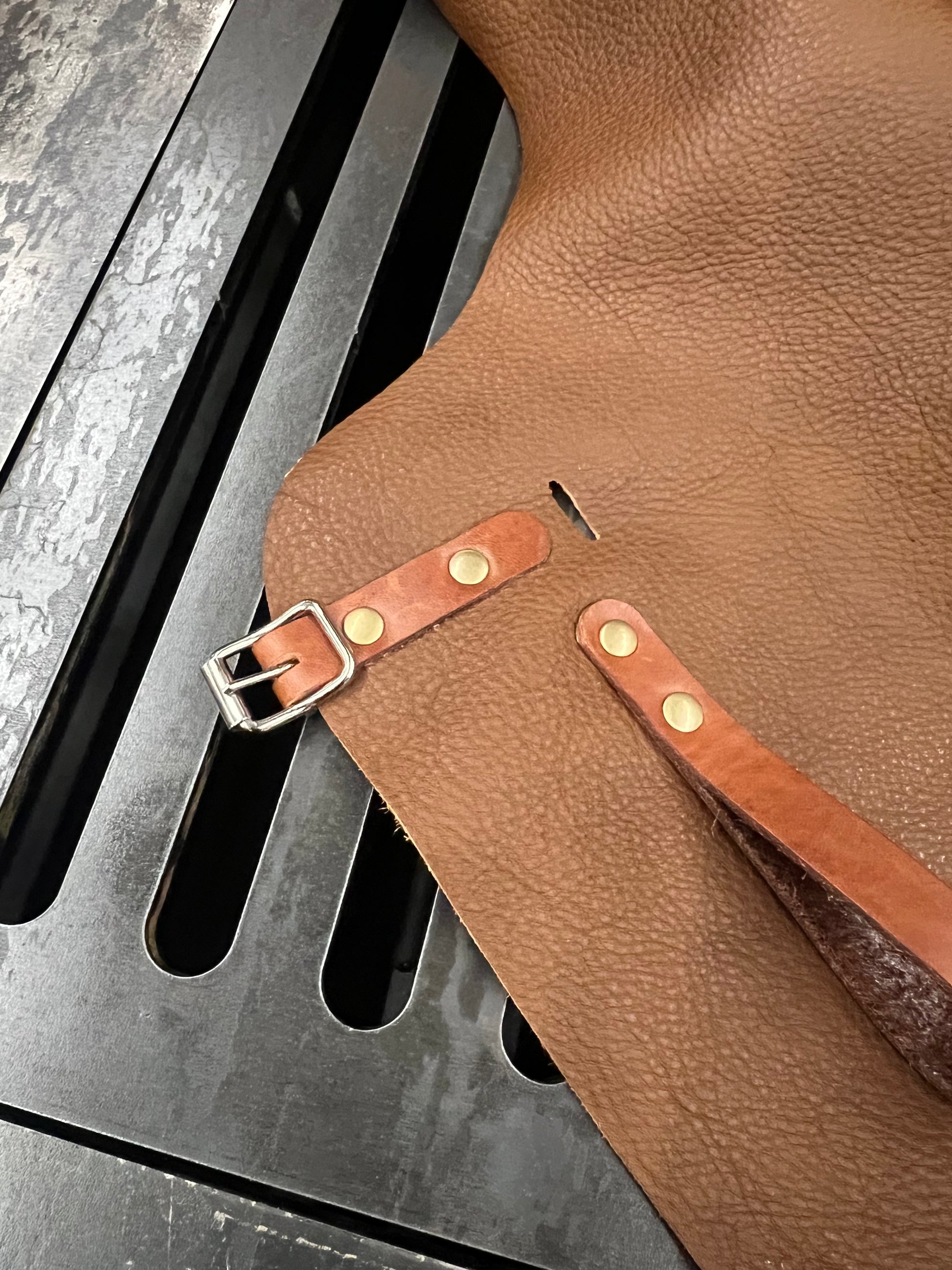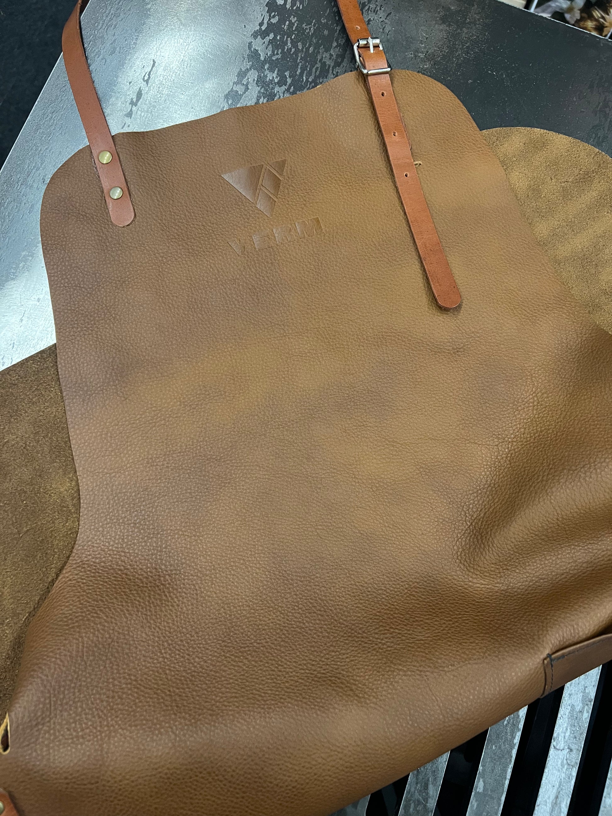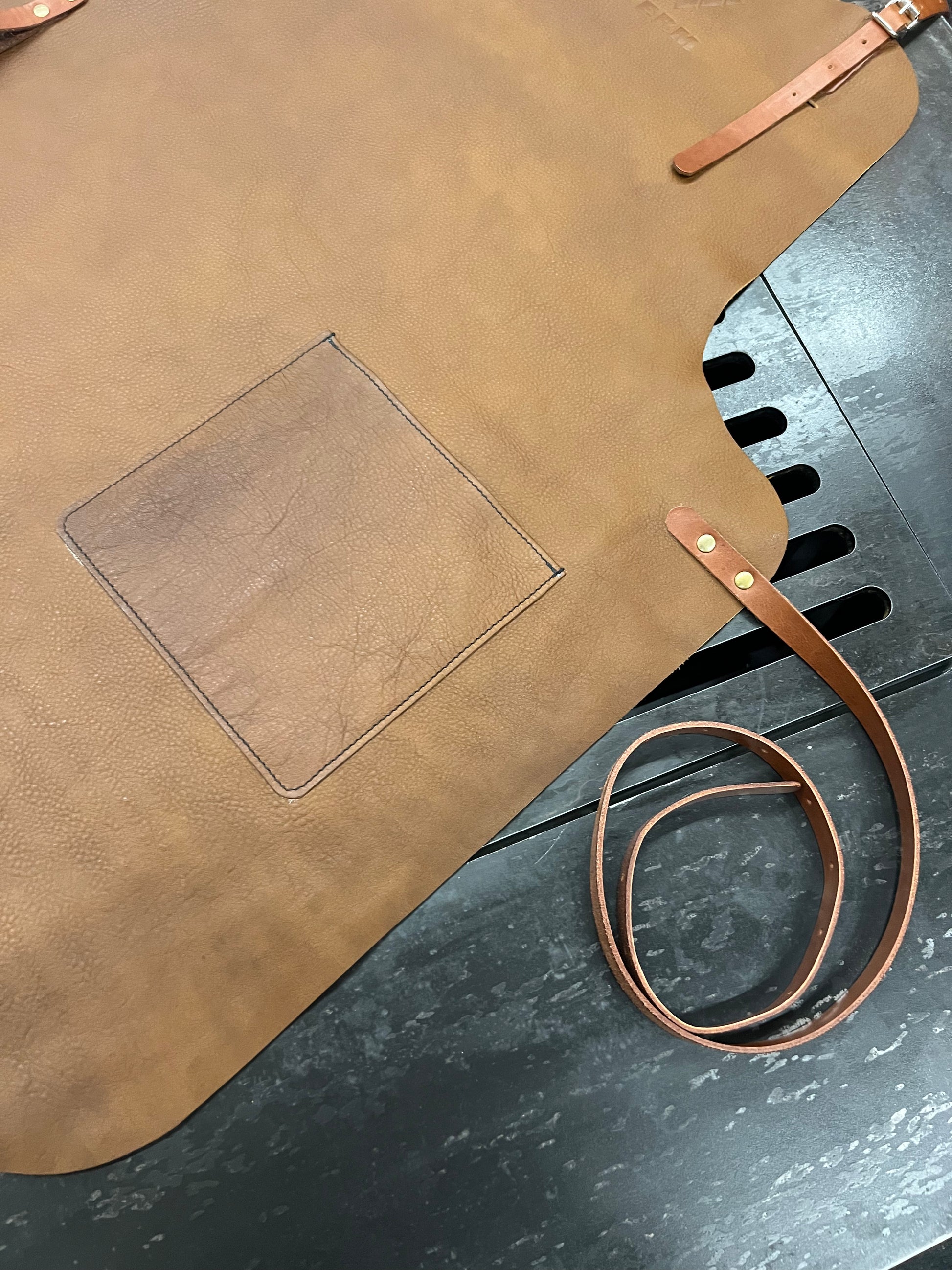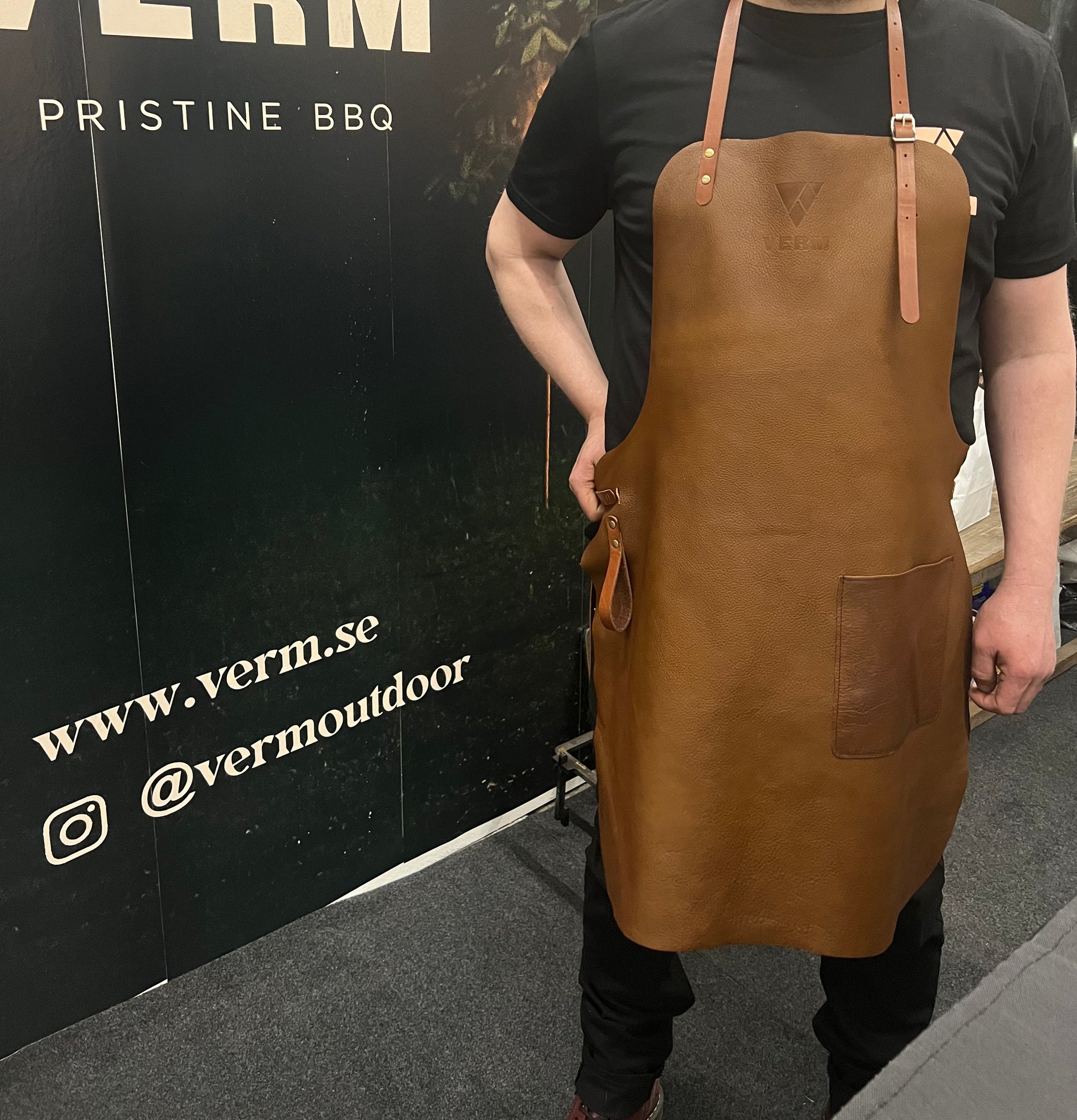 Vackert och snyggt förkläde i smidigt läder. Passar lika bra utomhus vid grillen eller den glödande kolbädden, som i köket när middagen ska tillagas. Förklädet har en exklusiv känsla då lädret är i ett stycke utan skarvar. Det är handsytt av Jan Odell från Tärnsjö. Dekorativa men framför allt funktionella detaljer som en ficka på sidan samt en justerbar nackrem och en ögla för bärselen.